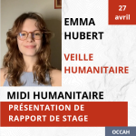 📣 Midis humanitaires : Présentations de travaux de recherches 📣 🗓️ Lundi 27 Avril: Emma Hubert 🕜 de 12h30 à 14h 📍 Salle DS-2220, à l'ESG UQAM L’OCCAH, dans sa vocation de dialogue, organise des Midis Humanitaires où des chercheur.es présenteront leurs travaux portant sur les thématiques du droit et de la coopération internationale. Ces [...]